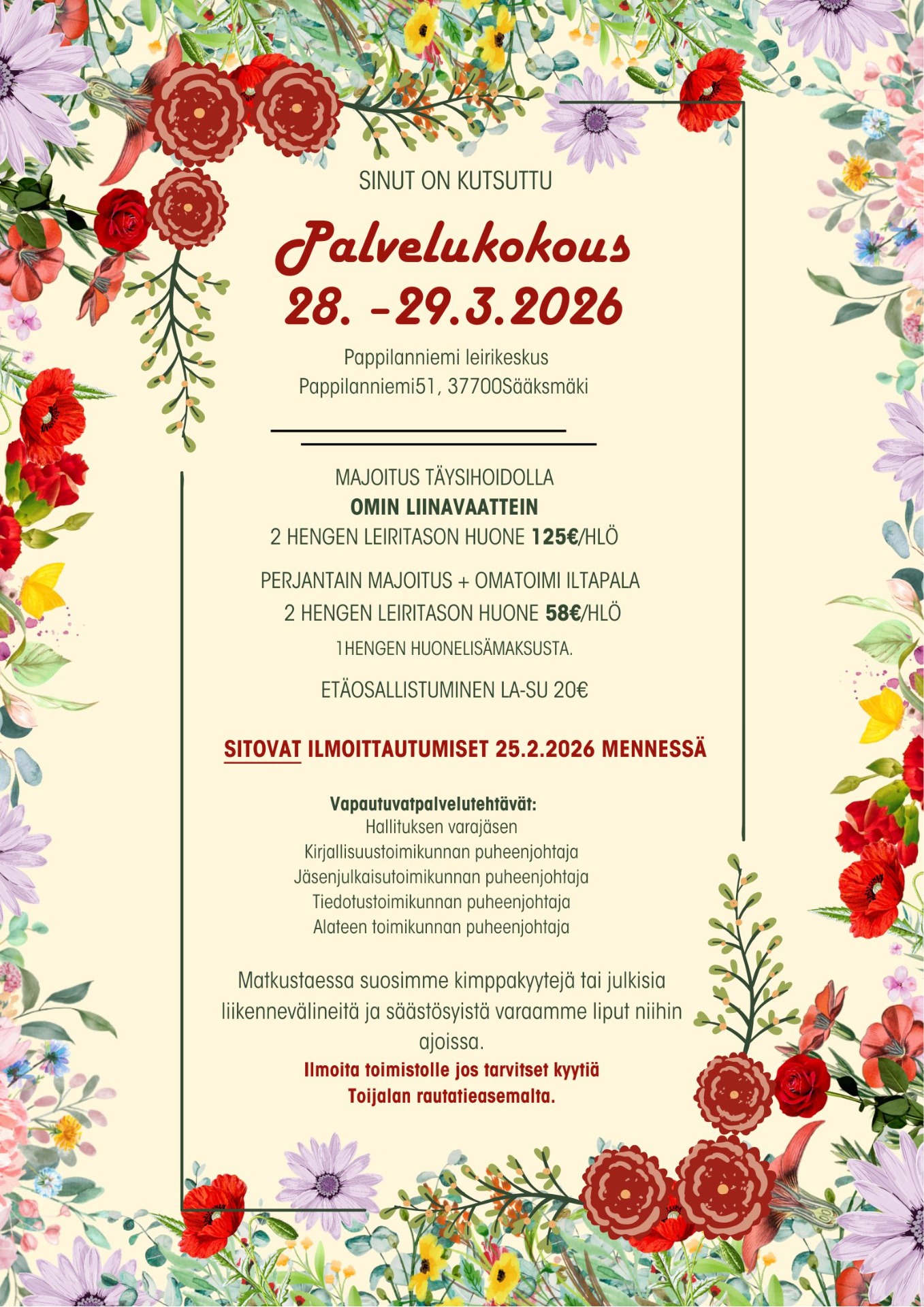 Sitova ilmoittautuminen 25.2.26 mennessä, tämän jälkeen tulleita ilmoittautumisia emme enää voi huomioida.