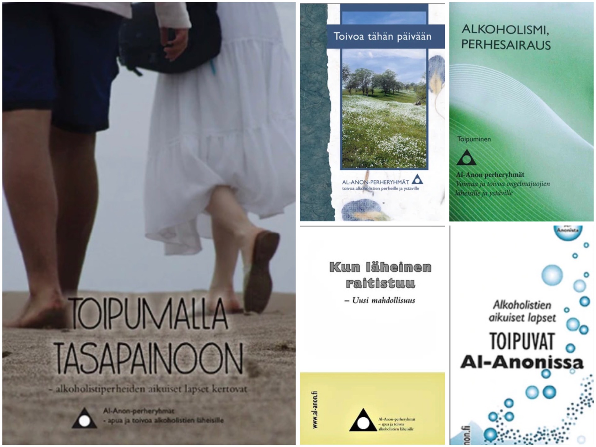 Paketti sisältää kirjat Toipumalla tasapainoon ja Toivoa tähän päivään sekä esitteet/vihkoset Alkoholismi, perhesairaus, Kun läheinen raitistuu ja Alkoholistien aikuiset lapset toipuvat Al-Anonissa.